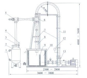 1、液面汁 2、緩沖罐 3、吸入管 4、真空表 5、蒸汽真空泵 6、水噴射泵 7、鐵架